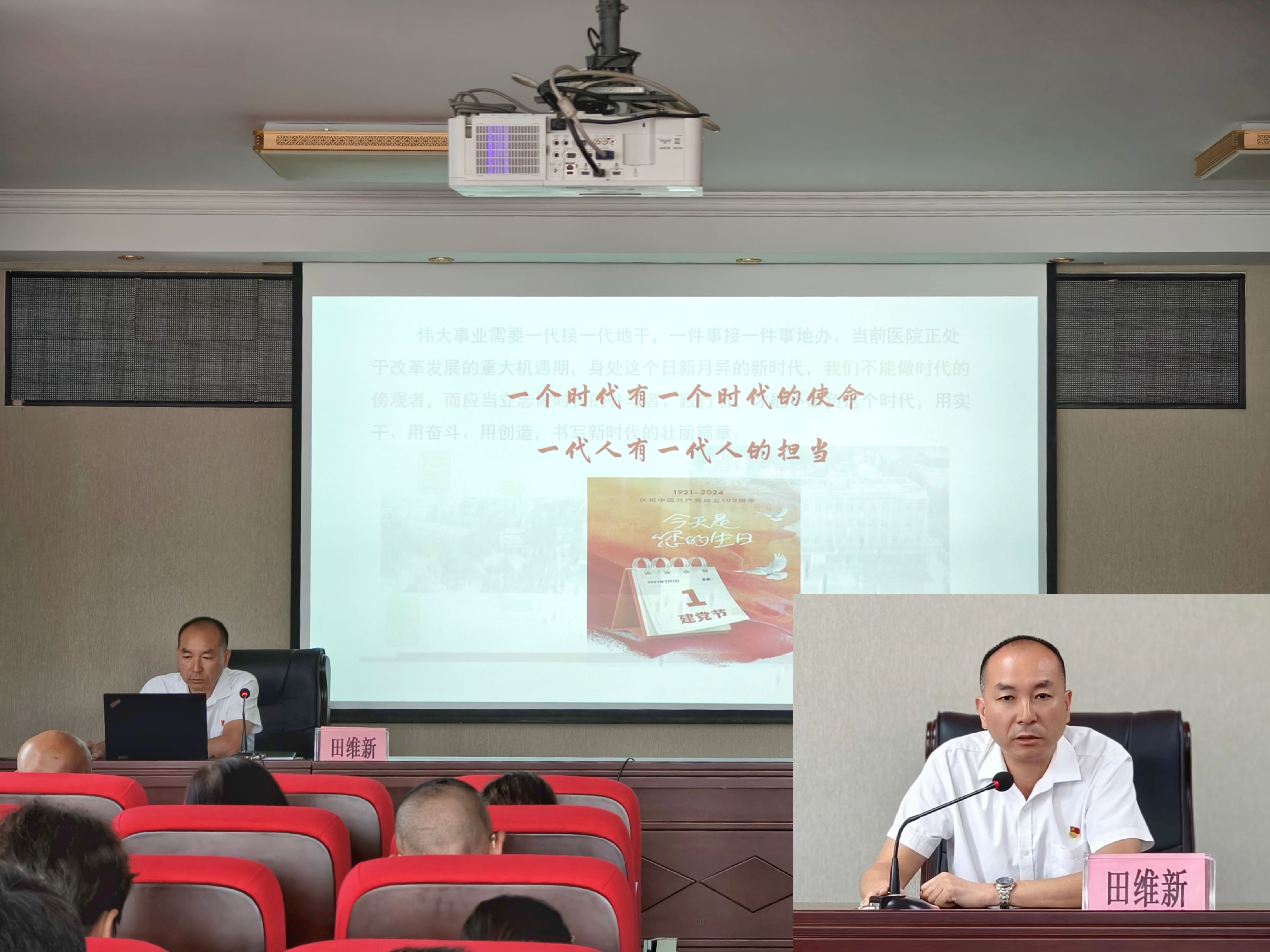 2024年7月1日下午,医院党委召开庆祝中国共产党成立103周年大会。激励全体党员干部进一步忆党史、明党纪、守初心、担使命。医院全体在职党员、退休党员代表、民主党派人士代表、人大代表、政协委员、党外知识分子代表、入党积极分子、共青团员代表参加。